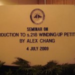 Kuala Lumpur Bar Committee Talk: “Introduction to s 218 Winding Up Proceedings” on March 24, 2012